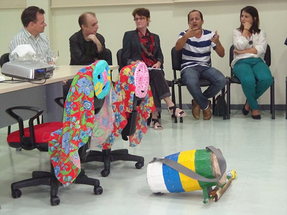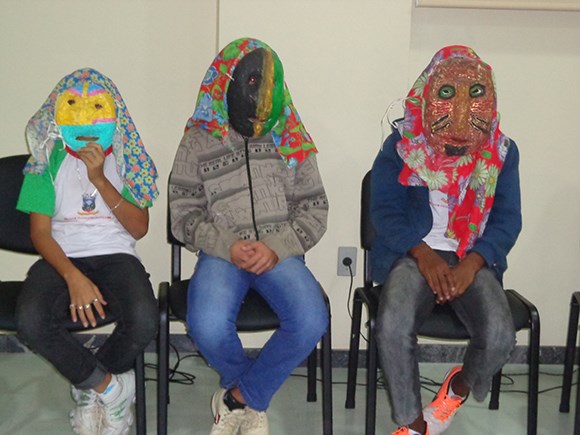 Estiveram presentes na roda de conversa alunos da “Escola de Campo Estação de Ciência Margarete Cruz Pereira”, do município de Cariacica. Eles participaram do trabalho da pesquisadora Andreia Teixeira Ramos sobre os Mascarados do Congo da Roda D’água. Natália Aparecida Rocha, 13 anos, conta que o assunto foi abordado nas aulas em diferentes disciplinas e eles têm feito apresentações com as máscaras em festas do congo e mostras culturais. A atividade gerou o curta-metragem “Amor Mascarado”, criado pelos estudantes em parceria com o Instituto Marlin Azul (IMA). O vídeo foi selecionado para exibição no Festival Anima Mundi, o segundo maior festival de animação do mundo.