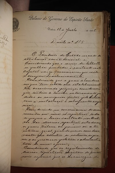 No dia 18 de julho de 1908 o presidente do Estado do Espírito Santo, Jerônimo Monteiro, assinou o Decreto nº 135, no qual criava o “Archivo Público Espírito-Santense”. A instituição surgiu como um anexo da Biblioteca Pública e ocupou inicialmente um dos salões do Palácio Anchieta. São 106 anos de história - completados nesta sexta-feira (18) – contada nos diversos documentos que compõem o acervo, tais quais processos, papéis oficiais, cartas, fotografias, negativos, livros, películas, fitas de áudio e vídeo, vinis, microfilmes, mapas e mídias digitais.
