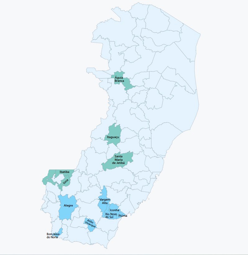 Até o momento, os seguintes municípios utilizam o sistema: Águia Branca, Alegre, Atílio Vivácqua, Bom Jesus do Norte, Ibatiba, Iconha, Itaguaçu, Iúna, Piúma, Rio Novo do Sul, Santa Maria de Jetibá e Vargem Alta.