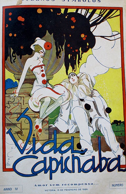 Colombinas, pierrots, palhaços, marinheiros e bailarinas eram alguns dos elementos que anunciavam o carnaval nas capas da Revista “Vida Capichaba”– publicação de maior destaque e circulação no Espírito Santo no período de 1923 a 1954. As imagens utilizadas, assim como a expressão dos personagens retratados, possibilitam análises sobre a época e o seu contexto. O impresso faz parte do acervo do Arquivo Público do Estado do Espírito Santo (APEES).