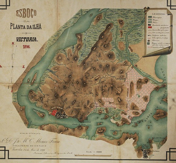 A “ilha de Victoria” está representada em um esboço de uma planta do ano de 1896, elaborada por Francisco Saturnino Rodrigues de Britto, que traz a indicação dos elementos naturais, como os morros, mar e mangues.
