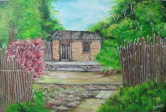 “Conheci um quilombola que me falou sobre a sua mãe. Ela tinha vários irmãos e sonhava com um espaço com muitas plantas em que pudessem brincar. Atrás da casa dela apareceu um pé de baraúna. Ela tirava todos os espinhos que apareciam para a família poder ficar embaixo da árvore sem se furar. Encantei-me com o relato e o relacionei com o quanto de espinhos essa mulher simbolicamente precisou tirar no decorrer da sua vida. Resolvi pintar a casa, mas com o verde e as árvores que ela havia sonhado e ser fiel à memória desta pessoa” afirma.