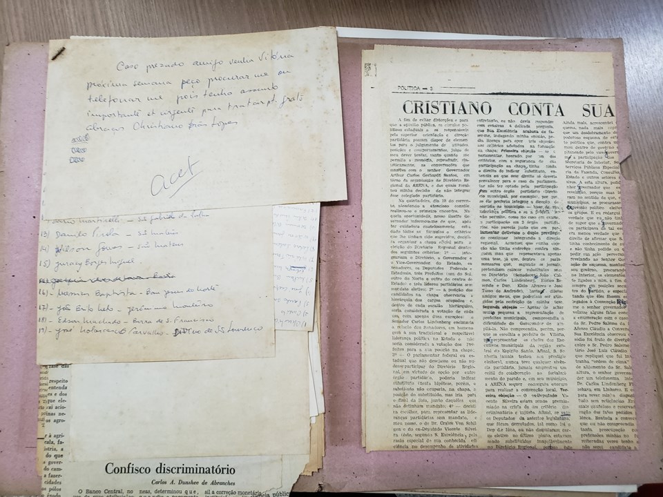 Uma coleção documental referente à atuação do ex-governador do Espírito Santo, Christiano Dias Lopes, foi doada pela família do político e passa a compor o acervo do Arquivo Público do Estado do Espírito Santo (Apees).