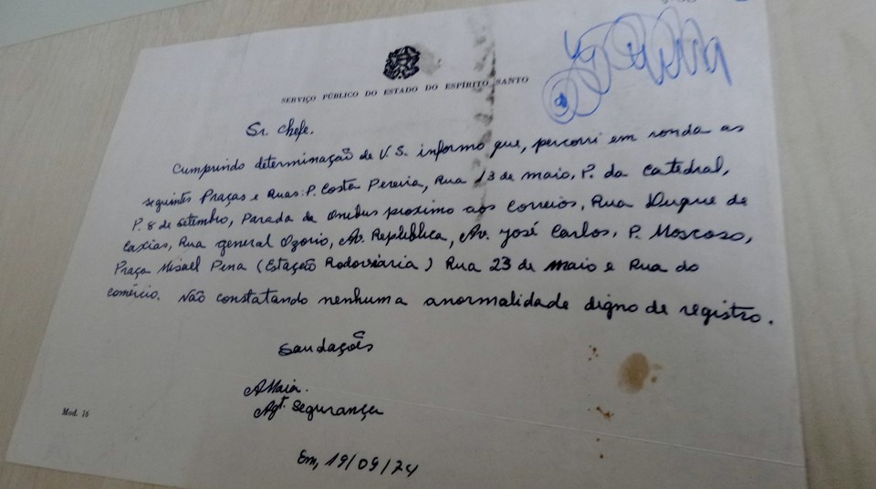 Nos materiais há informações sobre as rondas, mudanças de turnos, chegada de novos presos, comícios, gravações de campanhas nas rádios, avisos quanto à perda e roubos de documentos, dentre outras atividades cotidianas de vigilância feitas pela DOPS, ampliando os dados e as possibilidades de estudos sobre o regime de exceção no Espírito Santo.