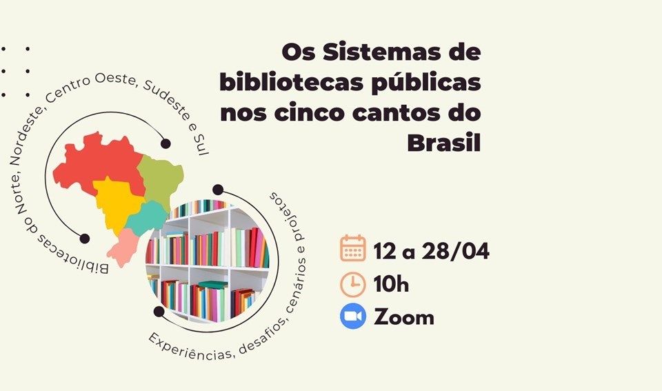 Em pauta, os modelos de bibliotecas públicas, seus cenários, desafios e projetos e como elas se organizam em rede. Com o tema "Os Sistemas de Bibliotecas Públicas nos cinco cantos do Brasil: experiências, desafios, cenários e projetos", os encontros acontecem através da plataforma Zoom, e são abertos ao público.