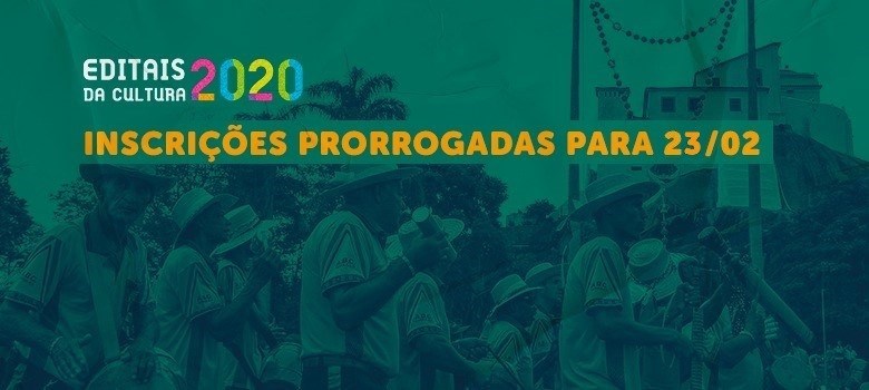 Todos os Editais da Cultura 2020 agora terão as inscrições abertas até as 18 horas do dia 23 de fevereiro. O Governo do Estado, por meio da Secretaria da Cultura (Secult), publicou a prorrogação no Diário Oficial do Estado, desta terça-feira (09).