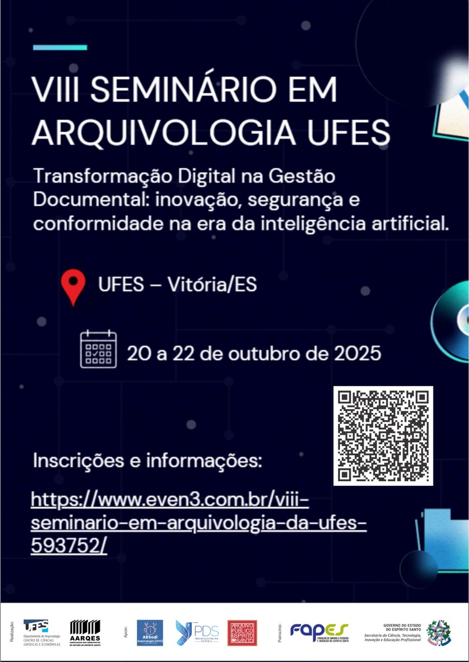 Vitória (ES) – A Universidade Federal do Espírito Santo (UFES) realiza, entre os dias 20 e 22 de outubro de 2025, o VIII Seminário em Arquivologia (SEMARQ), que este ano traz como tema central “Transformação Digital na Gestão Documental: inovação, segurança e conformidade na era da inteligência artificial”.